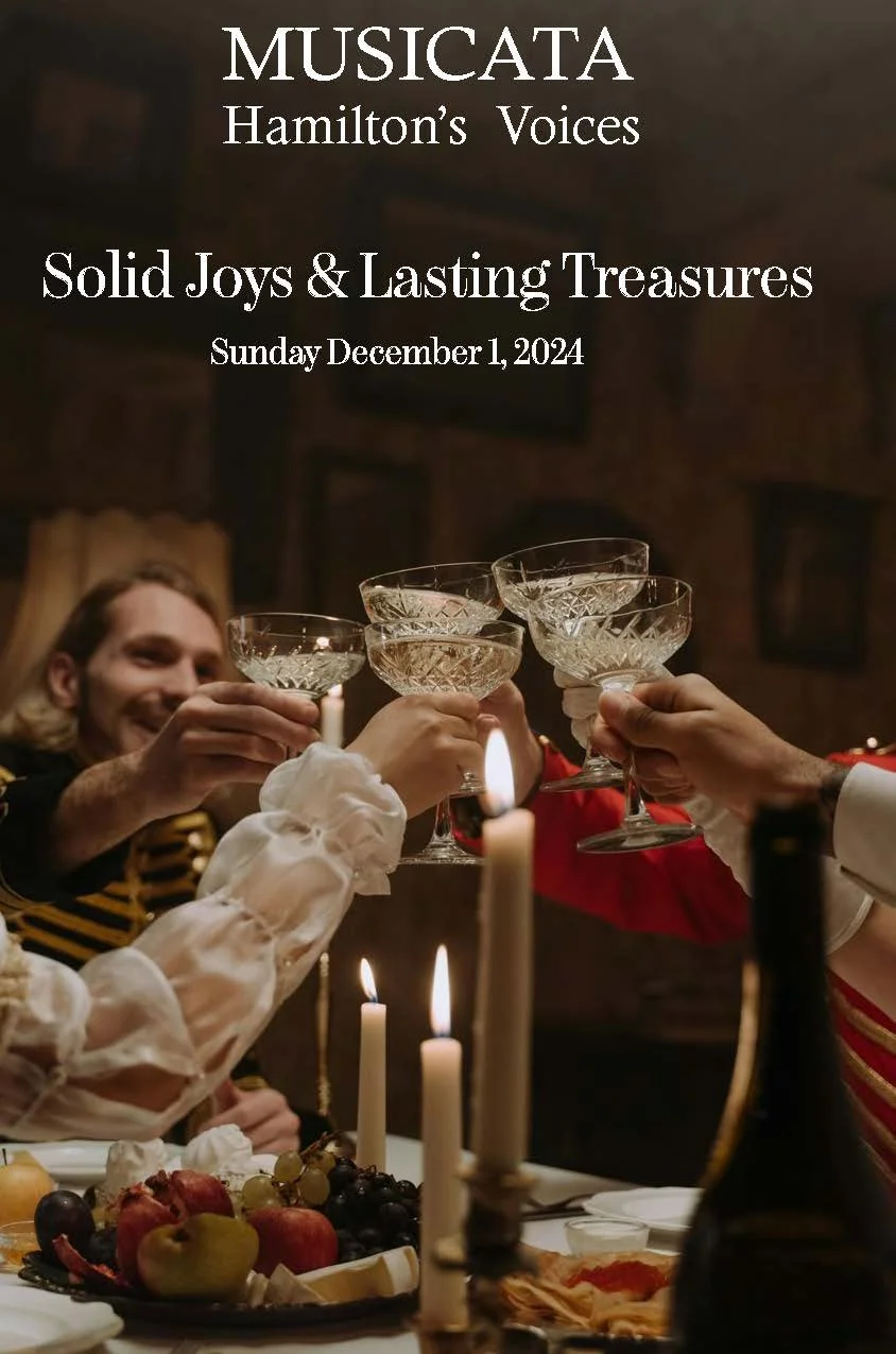 A text about Roger Bergs, a composer, conductor, organist, and teacher, and the musical group MusiCata Hamilton's Voices. The page includes a portrait of Roger Bergs and a group photo of MusiCata Hamilton's Voices, a chamber choir.