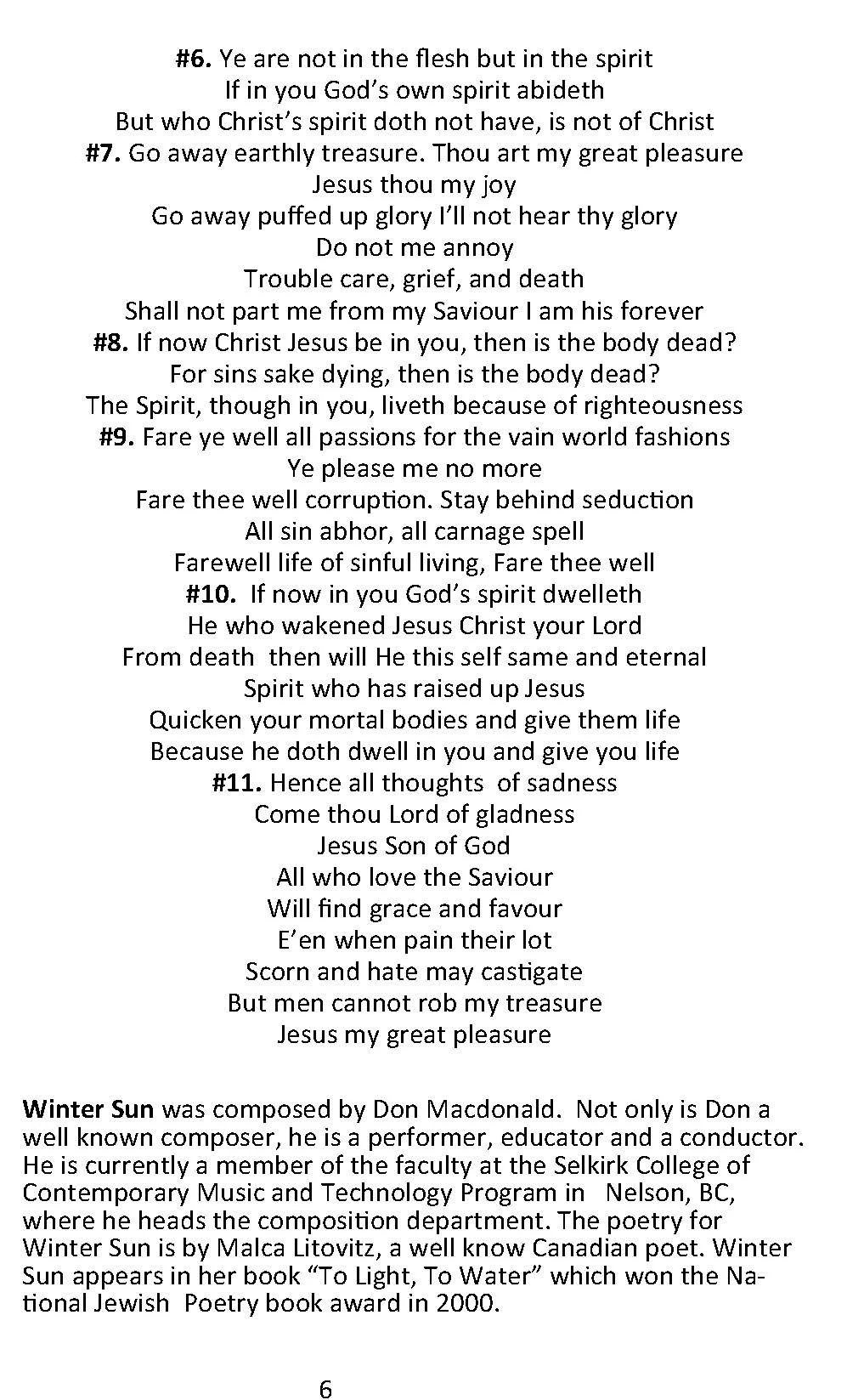 A scanned page of a religious poem or hymn with numbered sections, discussing spirituality, Christ's resurrection, and devotion to Jesus. The page includes a paragraph about the composer Don Macdonald, author of the poem 'Winter Sun'.